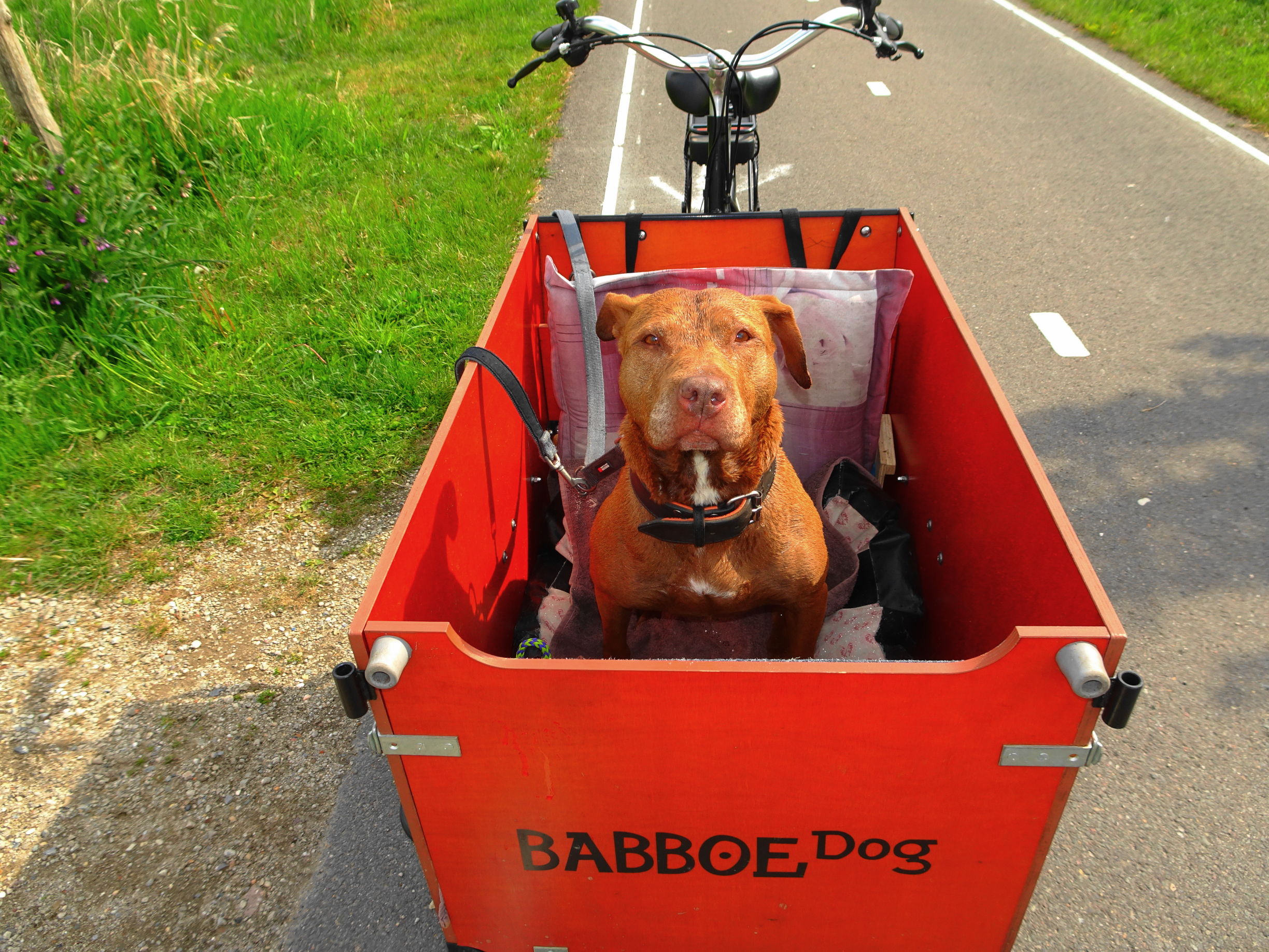 Jantien leidt een actief leven, heeft haar eigen hondenbakfiets en zodra het weer het ook maar enigszins toelaat, trekken wij erop uit om te bakfietsen, te wandelen én te zwemmen (zij, niet ik) in natuurgebieden rondom Delft.