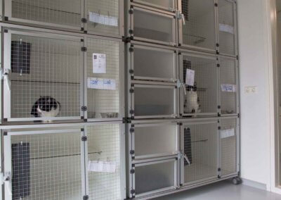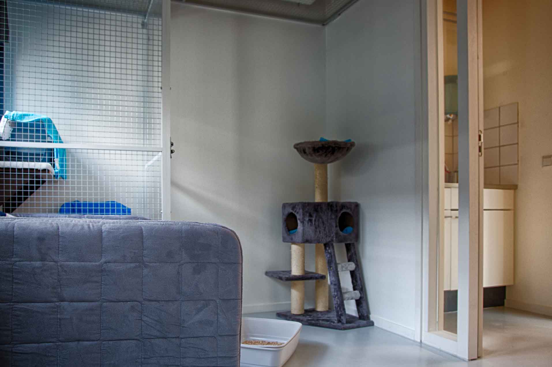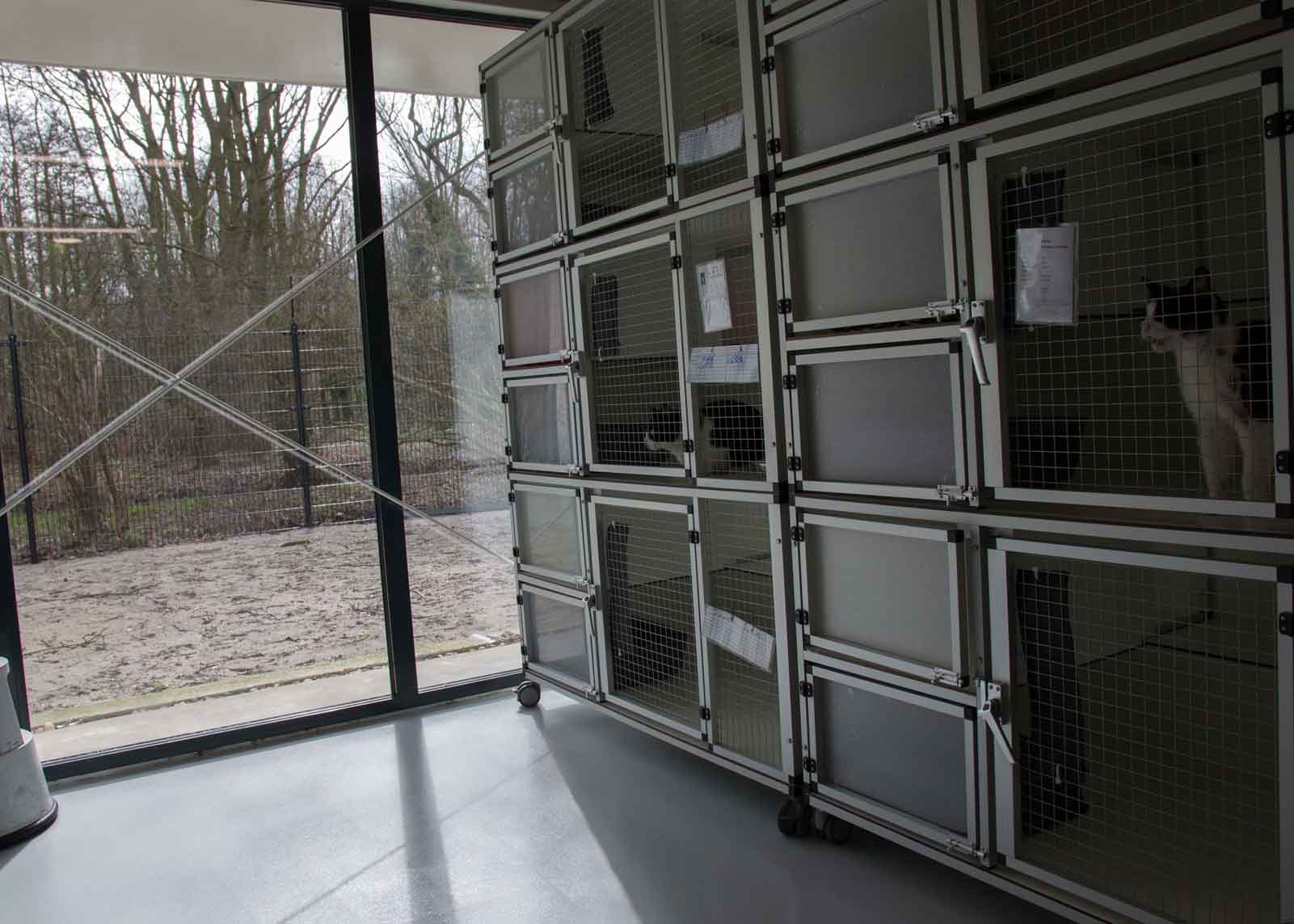 Hier wordt wereldwijd uitgebreid onderzoek naar gedaan. Met deze kennis, in samenwerking met Dr. Ruth van der Leij en de architect, hebben wij geprobeerd de kattenverblijven zo aangenaam mogelijk te bouwen en in te richten. We zijn uitgekomen op een combinatie van kattenkamers voor groepshuisvesting en zogenaamde ‘cat showers’ voor het solitair huisvesten van katten.